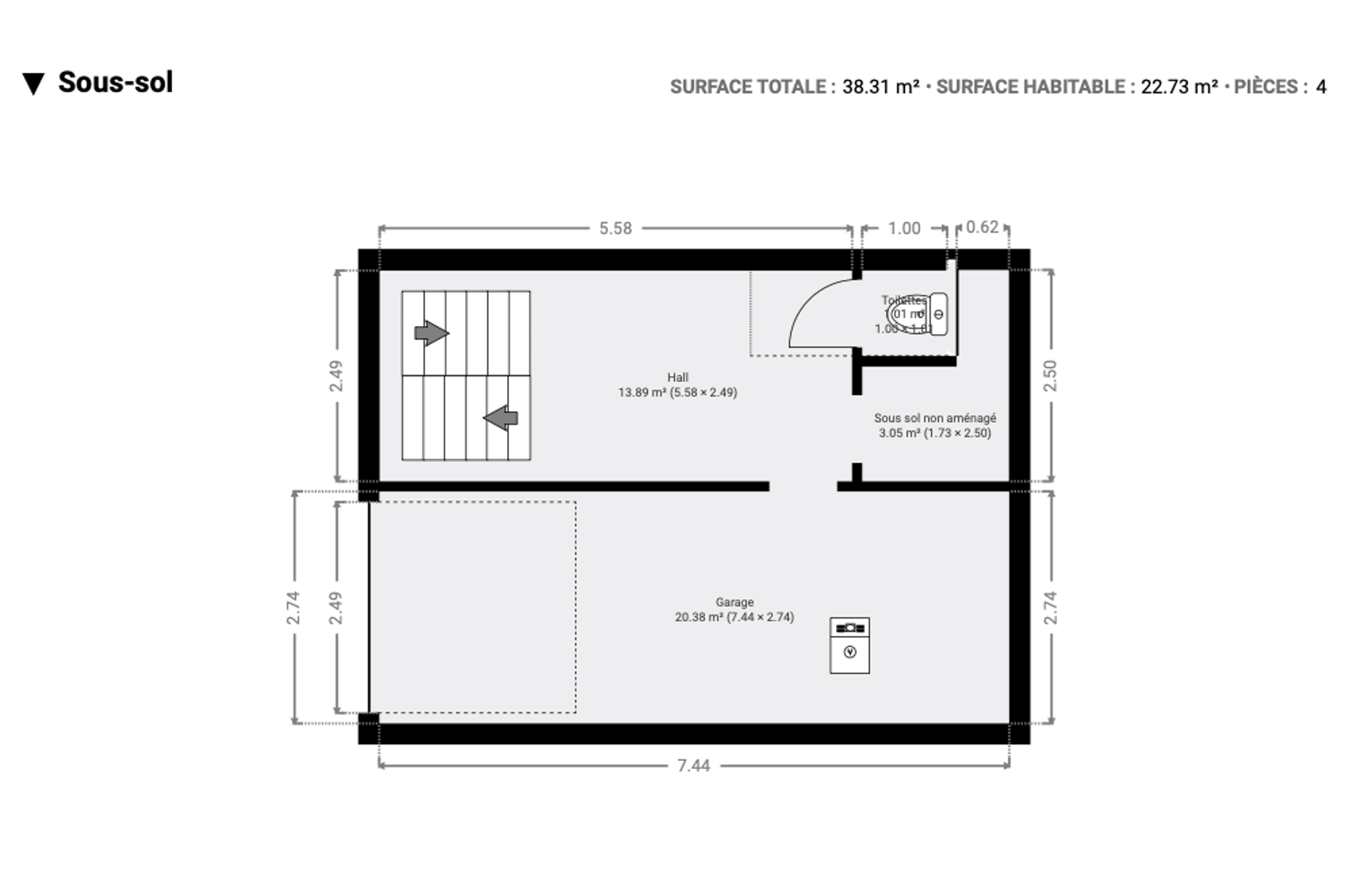 Sous-sols : deux espaces polyvalents dont une buanderie, un WC séparé et un garage.